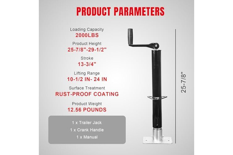 • A-Frame trailer jack easily raises and lowers any trailer up-to a 1 ton (2,000 lb) capacity