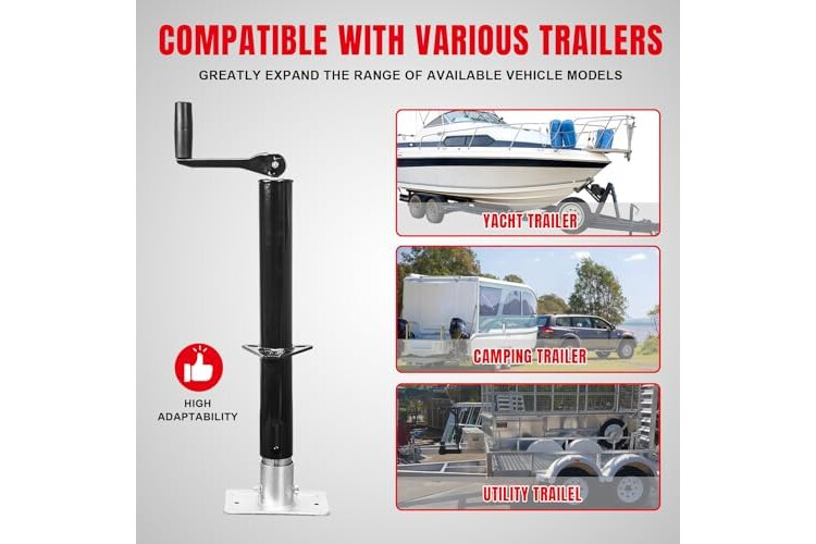 • Adjustable height from 10-1/2" to 24-1/2" and fits trailer tongues 3" to 4"