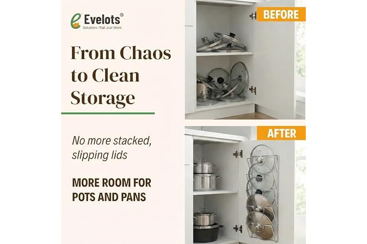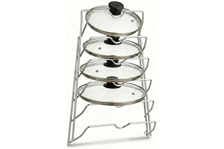 Strong Metal Construction: Made of durable steel with a smooth, rust‑resistant chrome finish. Designed to hold up to six lids securely in place.