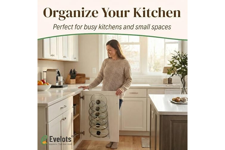 Check Fit Before Installing: Fits most lids with round knobs or ear‑shaped handles up to 2 inches wide. Please measure your cabinet interior and lid sizes before purchasing to ensure a proper fit.