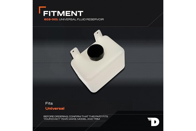 Universal design - this coolant reservoir is not vehicle-specific, and is designed for convenient use in a variety of applications where a durable reservoir is needed
