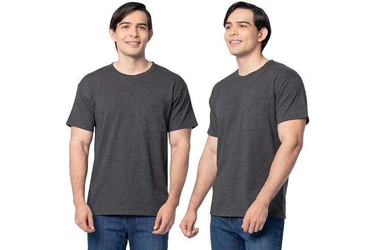 Fruit of the Loom Mens Eversoft Cotton Short Sleeve Pocket T-Shirts, Breathable & Tag Free, 2-Pack