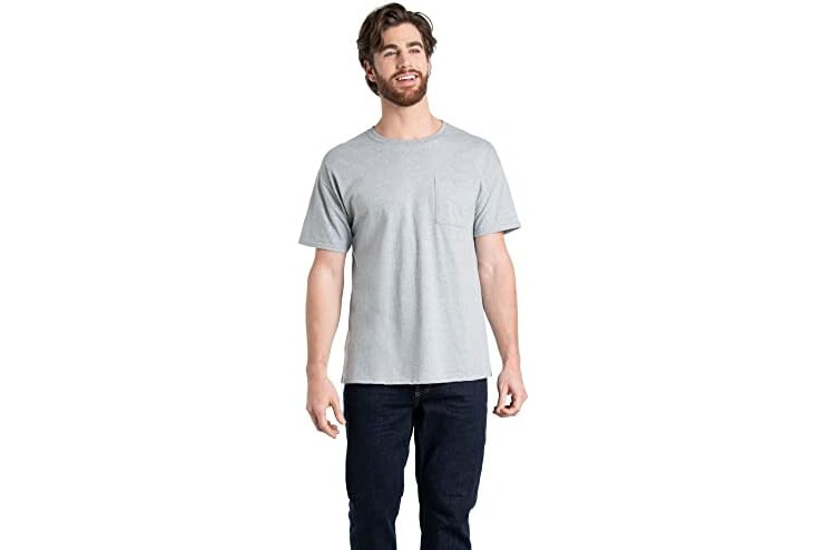 Fruit of the Loom Men's Eversoft Cotton T-Shirts (S-4XL), Pocket-2 Pack-Grey Heather, Large