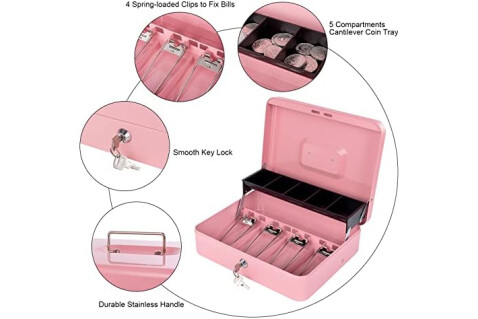 WELL DESIGNED: our pink cash box is designed with three parts: coin storage area, bill storage area, notes and receipts storage area, providing ample space for all your cash, coin and valuables, and keep them well organized in one money box