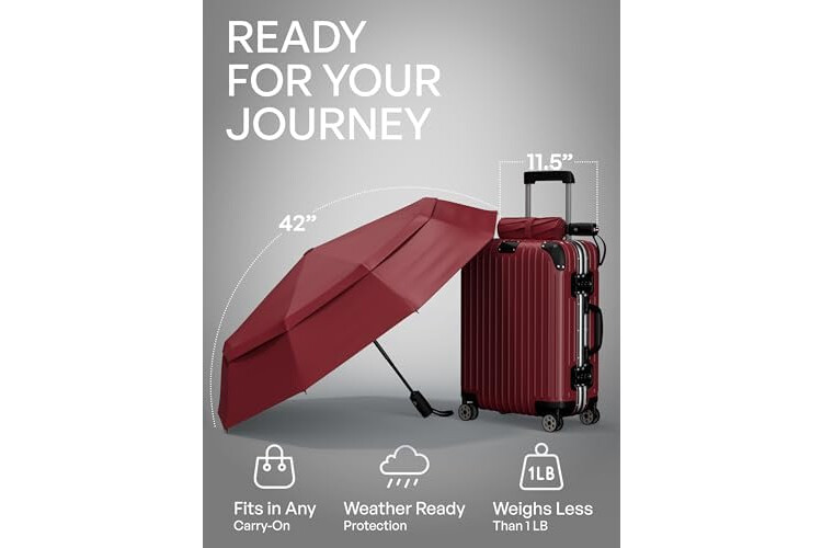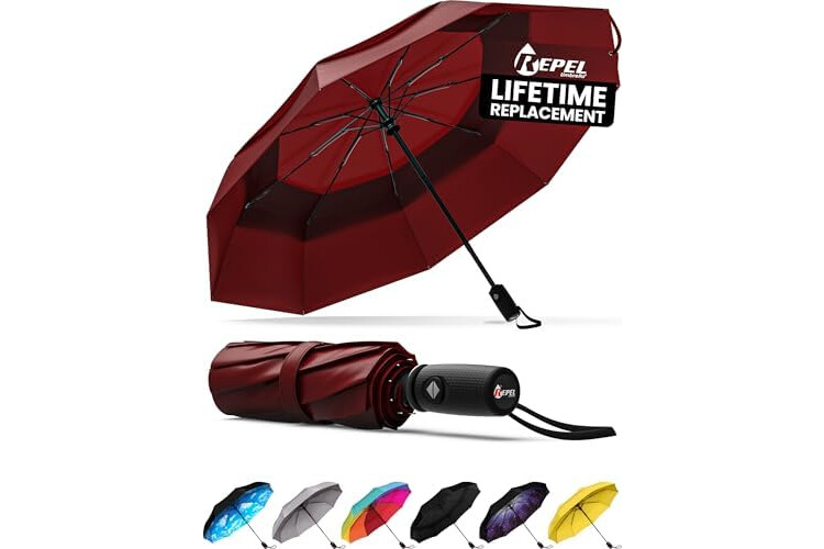 REPEL Windproof Travel Umbrella - Compact & Withstands Winds up to 85MPH , Strongest Premium Auto Folding Umbrella for Rain and Sun - Durable, Light & Portable for Women & Men , Fits Backpack & Cars