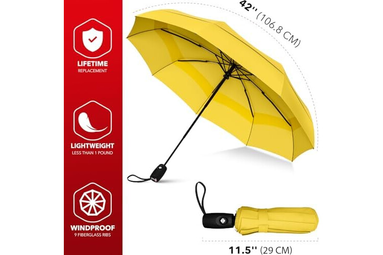 REPEL Windproof Travel Umbrella - Compact & Withstands Winds up to 85MPH , Strongest Premium Auto Folding Umbrella for Rain and Sun - Durable, Light & Portable for Women & Men , Fits Backpack & Cars