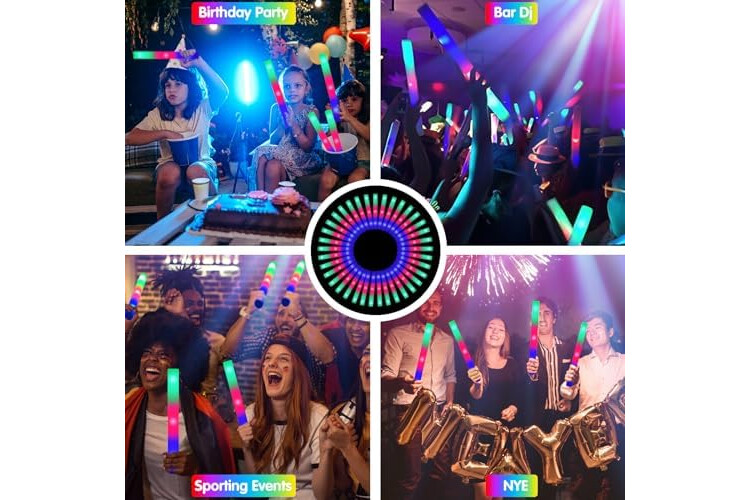 Infinite Glow In The Dark Fun: Spice up your glow parties with these foam glow sticks in the dark party favors and decorations or use as giveaway toys. Perfect for Christmas, Halloween, birthday parties, weddings, concerts, bar, sporting events, raves.