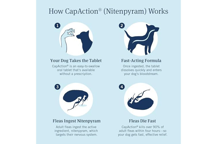 | Directions | A single dose of CapAction tablets should kill the adult fleas on your pet. If you pet gets re infested with fleas, you can safe |