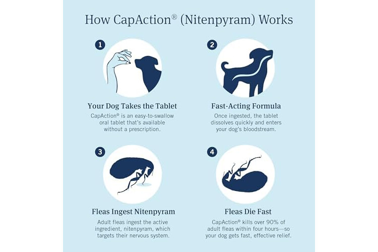 | Directions | A single dose of CapAction tablets should kill the adult fleas on your pet. If you pet gets re infested with fleas, you can safe |