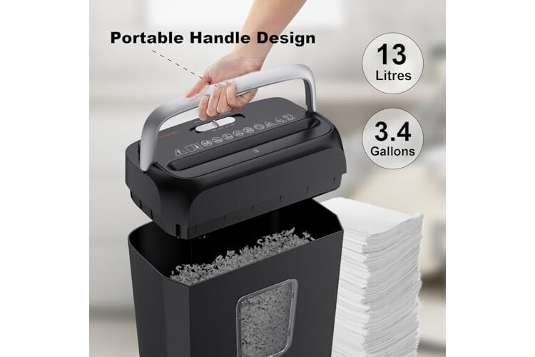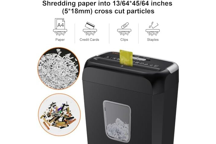 Crosscut Shredder for Home: This crosscut shredder with a 3.4-gallon wastebasket that can accommodate 180 sheets of A4 paper, reducing the need for frequent emptying