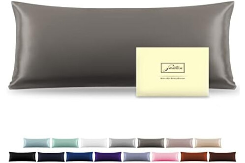 Silk Body Pillowcase Mulberry Silk Pillowcase Body Pillow Cases with Zipper Soft Breathable Smooth Cooling 20x54 inches Body Pillow Pillowcase for Sleep (Gray,20"X 54",1Pcs)