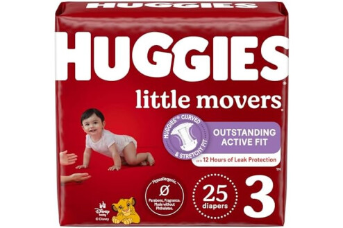 Huggies Size 3 Diapers, Little Movers Baby Diapers, Size 3 (16-28 lbs), 25 Count, Packaging May Vary