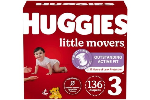 Huggies Size 3 Diapers, Little Movers Baby Diapers, Size 3 (16-28 lbs), 136 Count, Packaging May Vary