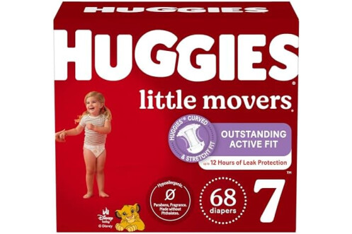 Huggies Size 7 Diapers, Little Movers Baby Diapers, Size 7 (41+ lbs), 68 Count, Packaging May Vary