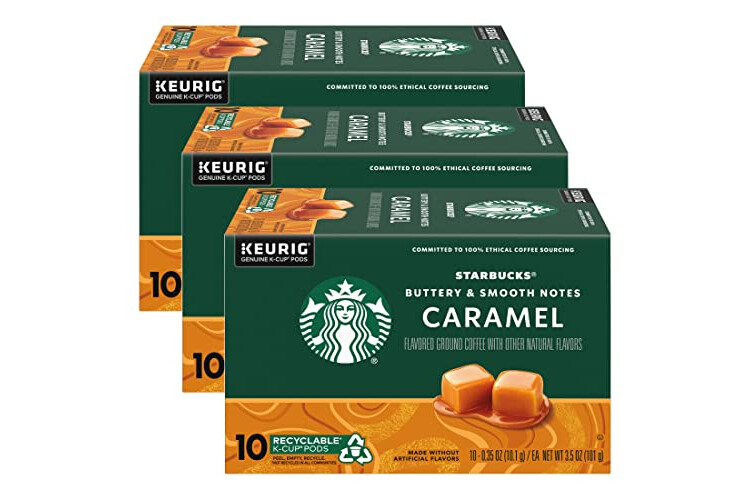 Starbucks Flavored Coffee K-Cup Pods, Caramel Flavored Coffee, Made without Artificial Flavors, Keurig Genuine K-Cup Pods, 10 CT K-Cups/Box (Pack of 3 Boxes)