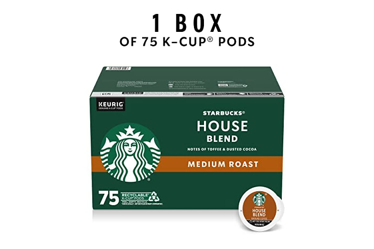 Starbucks K-Cup Coffee Pods, Medium Roast, House Blend for Keurig Coffee Makers, 100% Arabica, 1 Box (75 Pods)