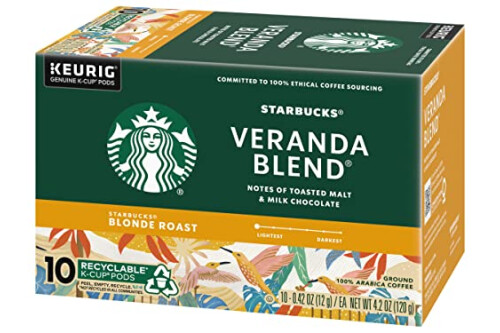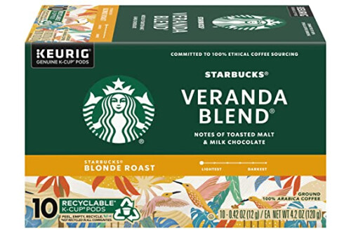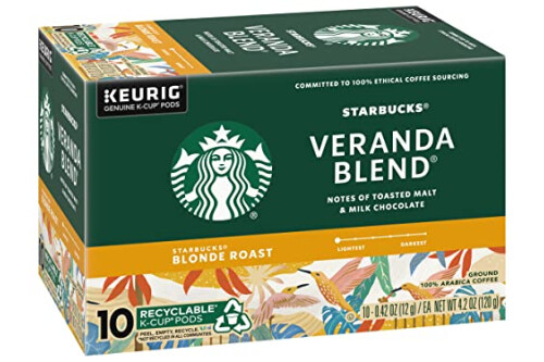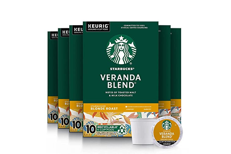 Starbucks Coffee K-Cup Pods, Veranda Blend Coffee, Blonde Roast 100% Arabica Coffee, Keurig Genuine K-Cup Pods, 10 CT K-Cup Pods Per Box (Pack of 6 Boxes)