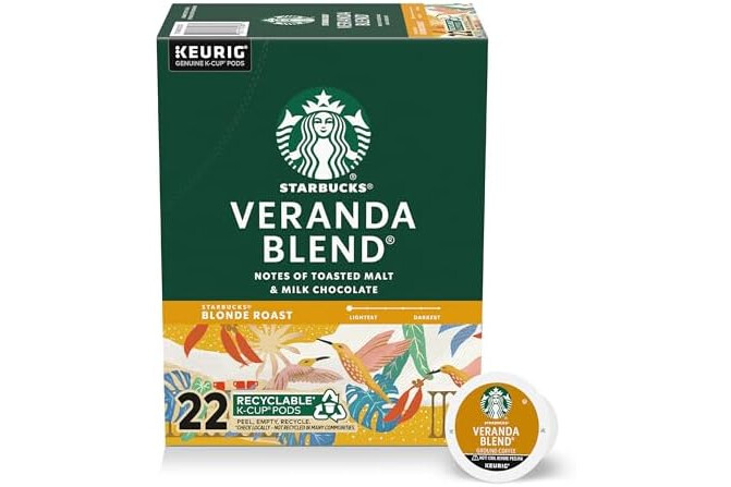 Starbucks K-Cup Coffee Pods, Blonde Roast Hot or Iced Coffee, Veranda Blend, 22 Keurig Pods