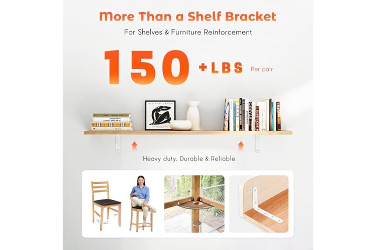 BRACKET MADE OF PREMIUM STEEL TO SUPPORT HEAVY WEIGHT. Our shelf bracket is made of heavy duty steel and could maxium support weight of 35lb for a pair of this L bracket. Our black corner braces come with a L pattern and could work perfectly for installing shelves, furniture and wall shelves, and so on.