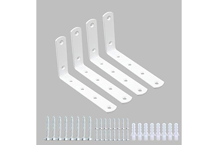 Corner Brace 4 Pcs Shelf Bracket Heavy Duty White Steel L Corner Brace, Decorative Joint Angle Bracket for Shelf 5 InchX3 Inch Shelves Wall Hanging Bracket with Screws (125X75mm(5 InchX3 Inch)(4PCS)