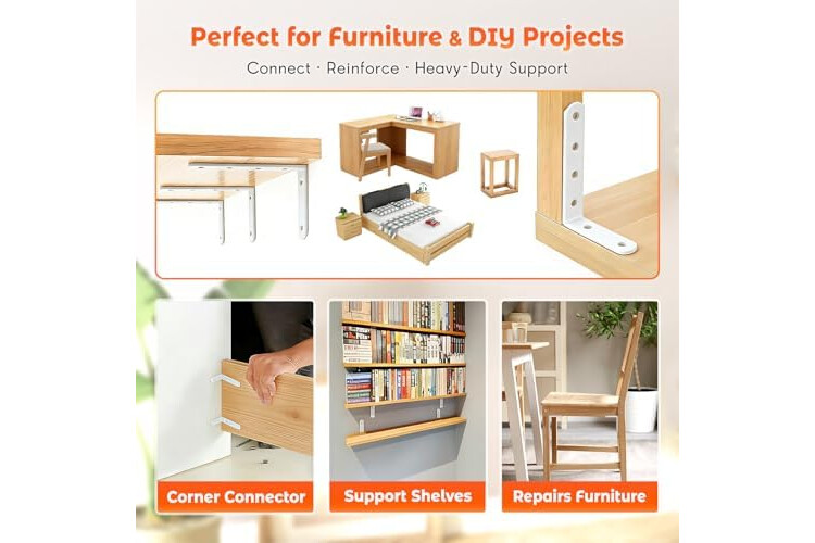 GREAT AMOUNT PACKAGE FOR MOST AFFORDABLE PRICE. the brackets package include 8 pieces black L brackets and 48 screws. We also sell 16pcs/12pcs/4pcs set. Bigger the amount, lower the each bracket price. The size of our corner brace is 125X75mm(5 InchX3 Inch) and comes with all screws and hardwares that are needed to stall a bracket. Our package include more brackets while cost less which is perfect choice for you.