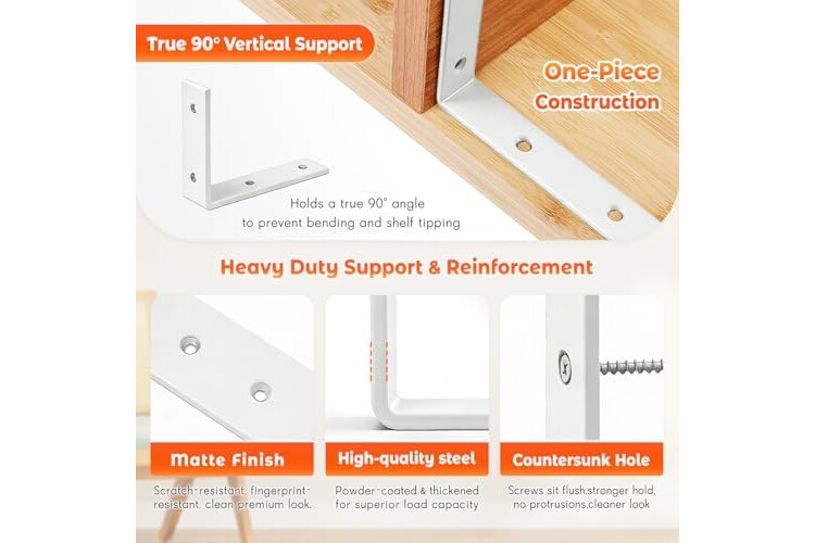 WINKER Shelf Bracket 10 Inch Heavy Duty White Brackets for Shelves Corner L Bracket for Wall Shelves Metal Iron Shelf Brackets