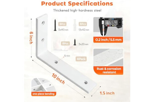 GREAT AMOUNT PACKAGE FOR MOST AFFORDABLE PRICE. the brackets package include 8 pieces black L brackets and 48 screws. We also sell 16pcs/12pcs/4pcs set. Bigger the amount, lower the each bracket price. The size of our corner brace is 125X75mm(5 InchX3 Inch) and comes with all screws and hardwares that are needed to stall a bracket. Our package include more brackets while cost less which is perfect choice for you.