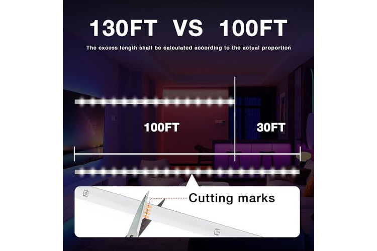 Smart APP and IR remote control: The 130 feet led strip lights support both app DAYBETTER and 24 keys ir remote for control, Different modes can be chosen, like Flashing, Quick, Jump, Fade, etc. You can freely choose to control 16 million colors