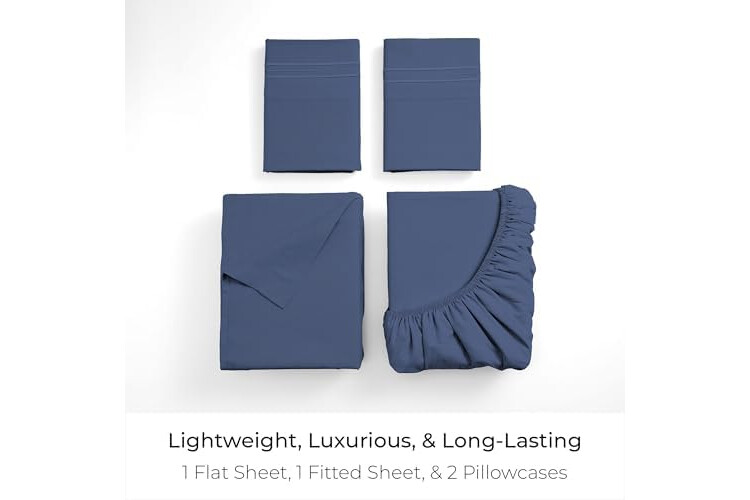 Mellanni Queen Sheets Set - 4 PC Iconic Collection Bedding - Hotel Luxury, Extra Soft, Cooling Bed Sheets - Wrinkle, Fade, Stain Resistant (Queen, Blue Nova)