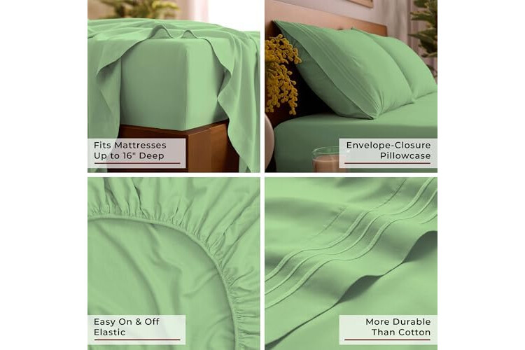 Mellanni Full Sheets Set - 4 PC Iconic Collection Bedding - Hotel Luxury, Extra Soft, Cooling Bed Sheets - Wrinkle, Fade, Stain Resistant (Full, Pistachio)