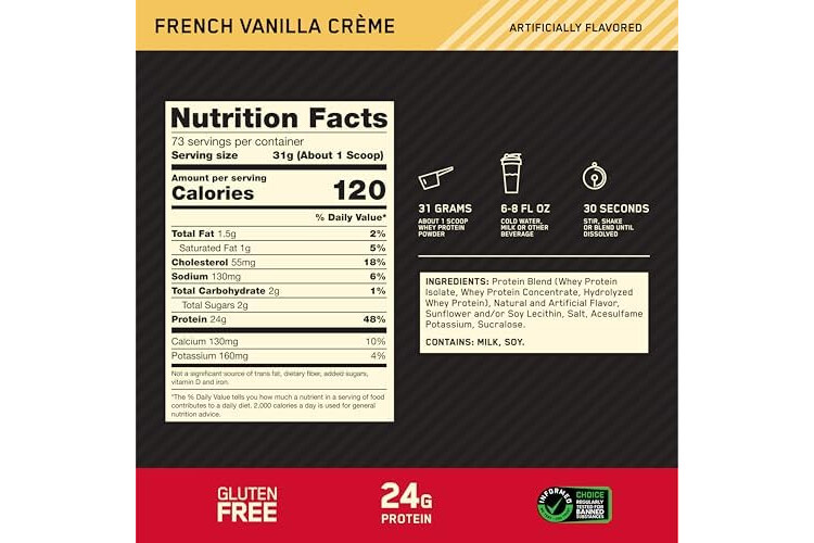 Optimum Nutrition Gold Standard 100% Whey Protein Powder, French Vanilla Crème, 5 Pound (Packaging May Vary)
