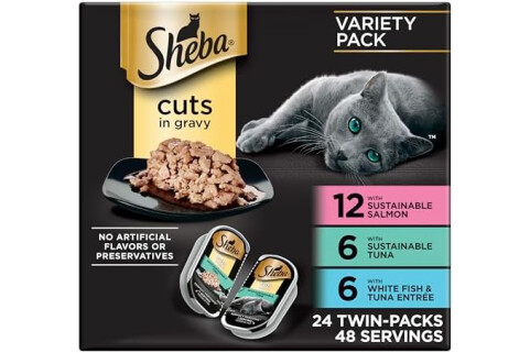 | Included Components | SHEBA PERFECT PORTIONS Multipack Cuts in Gravy Gourmet Salmon, Signature Tuna, and Delicate Whitefish & Tuna Entrée Wet Cat Food |