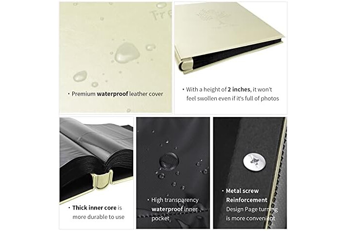 PP HIGH-TRANSPARENT INNER POCKET: The inner pocket of the album is made of high- transparent PP film, which can make the photo display clear, moisture-proof, anti-aging, and keep the true color of the photo.