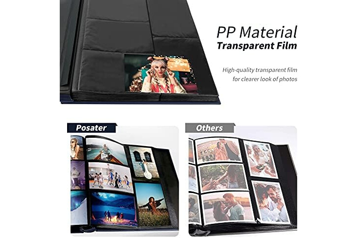 💎THICKENED ACID FREE INNER CORE: Posater Photo Albums adopts environment-friendly PVC inner core, not yellowing, anti-aging, thicker material, not easy to damage.