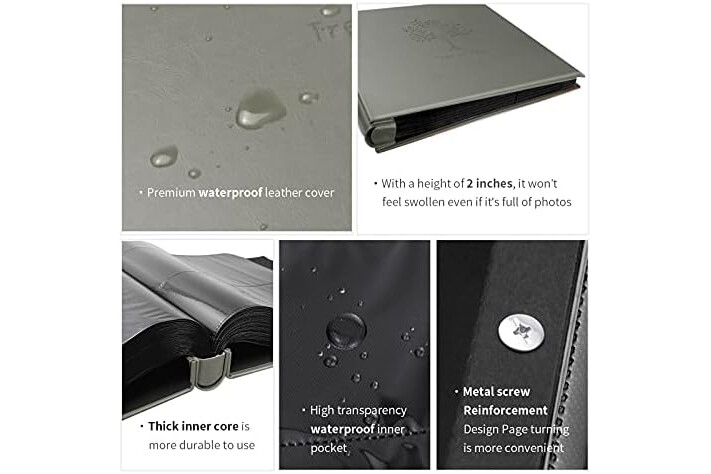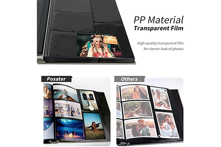 PP HIGH-TRANSPARENT INNER POCKET: The inner pocket of the album is made of high- transparent PP film, which can make the photo display clear, moisture-proof, anti-aging, and keep the true color of the photo.