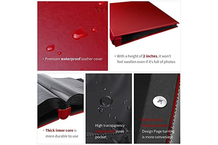 PP HIGH-TRANSPARENT INNER POCKET: The inner pocket of the album is made of high- transparent PP film, which can make the photo display clear, moisture-proof, anti-aging, and keep the true color of the photo.