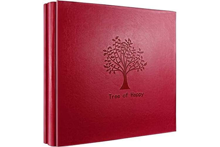 Photo Album 4 x 6 600 Pockets Photos, Red Leather Cover, Extra Large Capacity Wedding Baby Anniversary Valentines Picture Albums Holds 600 Horizontal and Vertical Photos Tree Pattern Album (Red)