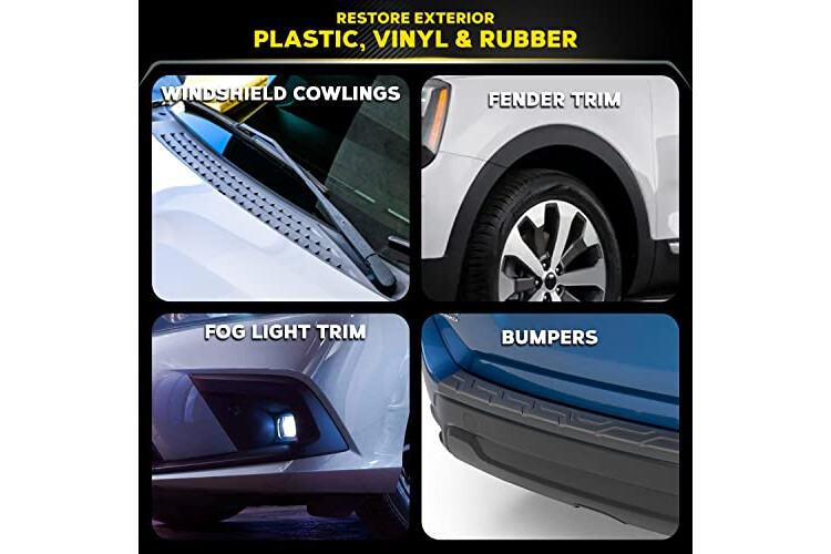 TRIM GLOSS: This plastic restorer creates a rich darkness and shine that lasts for weeks and withstands washing and rain. The result is a trim gloss that enhances the overall appearance of your vehicle, giving it a like-new finish