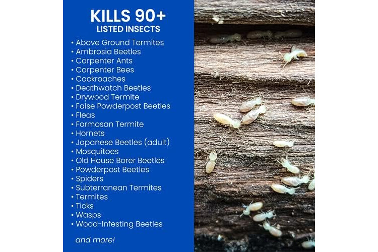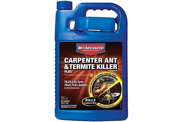BioAdvanced Carpenter Ant & Termite Killer Plus is a versatile solution for tackling over 75 pests outdoors. This insect spray is designed to serve as an outdoor bug spray home defense option, killing the listed insects upon contact, including ants, termites, fleas, ticks, and carpenter bees. Use this concentrate via a pump style sprayer for targeted application on lawns, landscapes, and home structures. This pest killer is also suitable for decks, eaves, and foundations. The formula is designed to create a protective barrier around your home, treating expansive areas up to 21,000 square feet. BioAdvanced's ant spray outdoors also works as a carpenter ant killer. Not for sale in NY. With active ingredient β- Cyfluthrin 2.5%. EPA registration number: 92564-24.