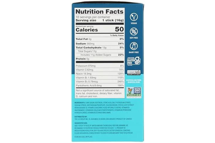 LIQUID IV Lemon Lime Hydration Drink Mix 10 Count, 0.56 OZ
