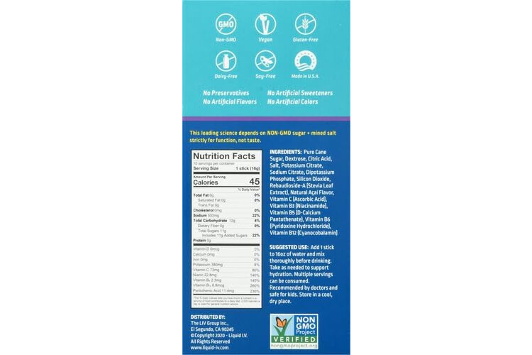 LIQUID IV Acai Berry Hydration Multiplier Electrolyte Drink Mix, 5.65 OZ
