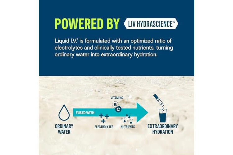 • SCIENCE-BACKED FORMULA: Powered by LIV HYDRASCIENCE, Liquid I.V. is designed with an optimized ratio of electrolytes and clinically tested nutrients.