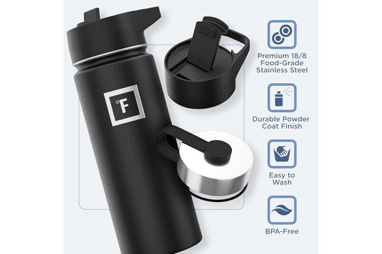 INSULATED SPORTS WATER BOTTLE: Goodbye sweat! The double wall insulation makes the Iron Flask sweat-free! It keeps your drink COLD for up to 24 hours, and HOT for up to 12 hours. *NOTE: ONLY the 14 Oz, 18 Oz, & 22 Oz fit in cupholders*