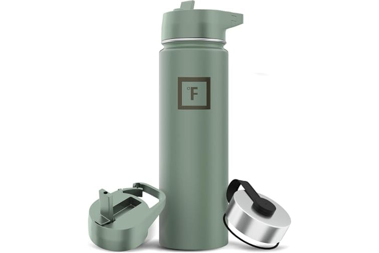IRON °FLASK Camping & Hiking Hydration Flask with 3 Lids - Stainless Steel, Double Walled & Vacuum Insulated Water Bottle - Leak Proof & BPA Free (Sage, Straw - 22 oz)