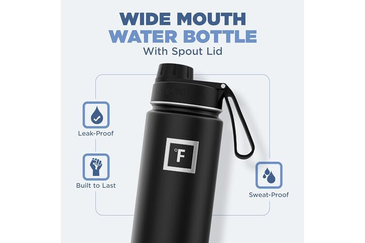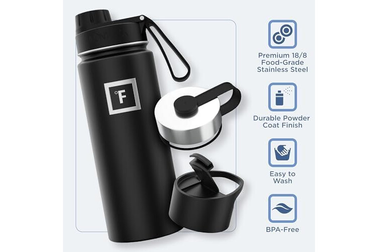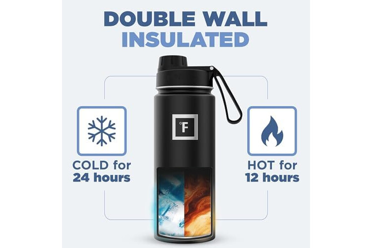 INSULATED SPORTS WATER BOTTLE: Goodbye sweat! The double wall insulation makes the Iron Flask sweat-free! It keeps your drink COLD for up to 24 hours, and HOT for up to 12 hours. *NOTE: ONLY the 14 Oz, 18 Oz, & 22 Oz fit in cupholders*