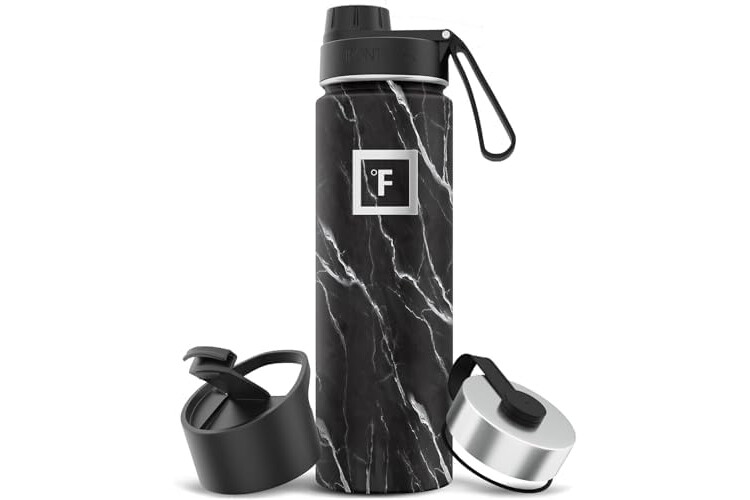 IRON °FLASK Camping & Hiking Hydration Flask with 3 Lids - Stainless Steel, Double Walled & Vacuum Insulated Water Bottle - Leak Proof & BPA Free (Black Marquina, Spout - 22 oz)