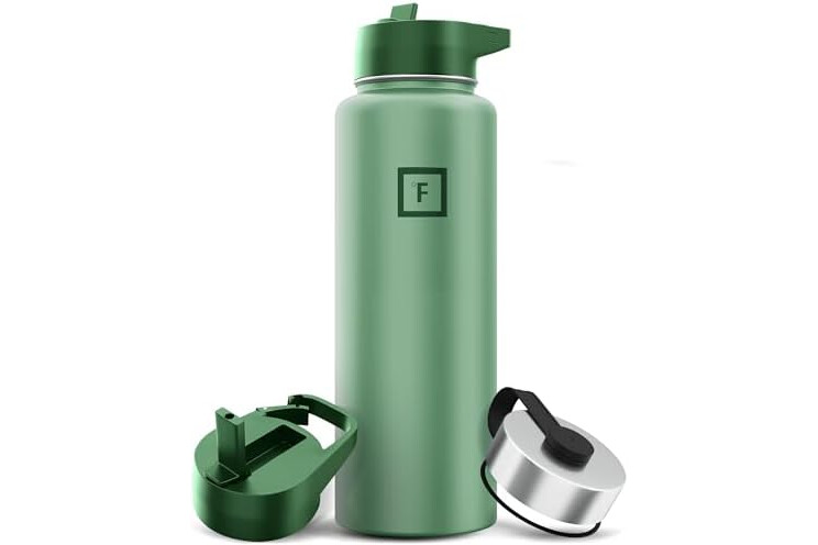 IRON °FLASK Camping & Hiking Hydration Flask with 3 Lids - Stainless Steel, Double Walled & Vacuum Insulated Water Bottle - Leak Proof & BPA Free (Sage Grove, Straw - 40 oz)
