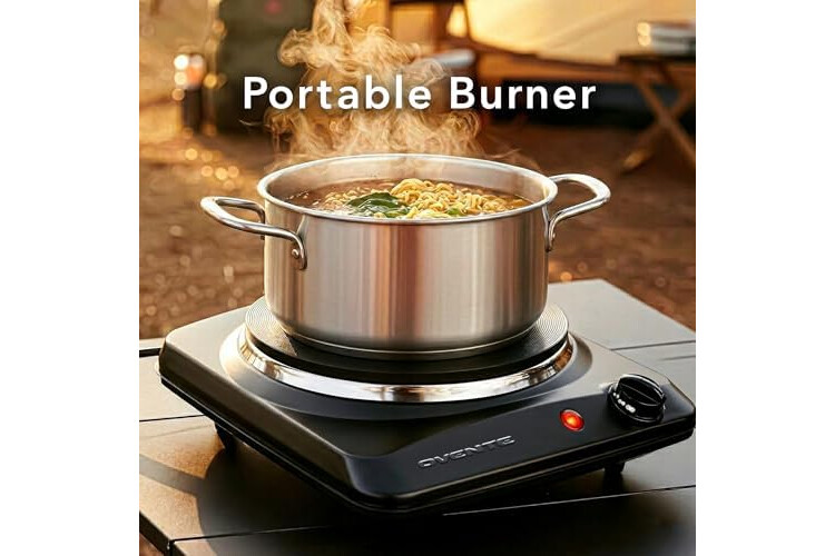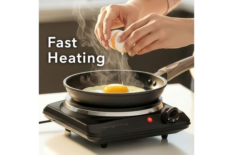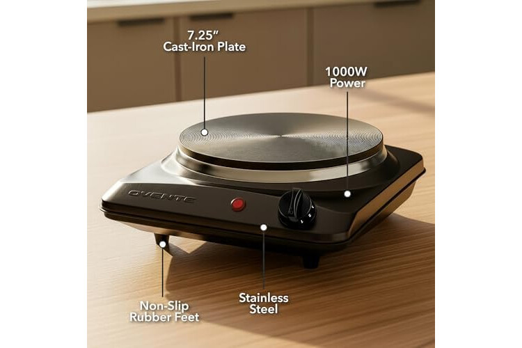 FAST & EVEN HEATING – Powered by 1000 watts (120V), this single burner features a durable 7.25” cast-iron plate that heats up quickly and distributes heat evenly. Perfect for frying, boiling water or soup, and keeping food warm.