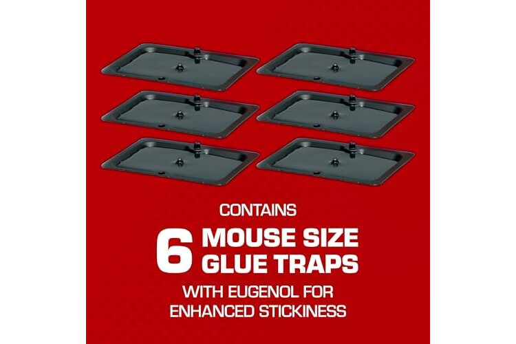 Each package of Tomcat Glue Traps Mouse Size with Eugenol for Enhanced Stickiness contains 6 disposable mouse-sized traps