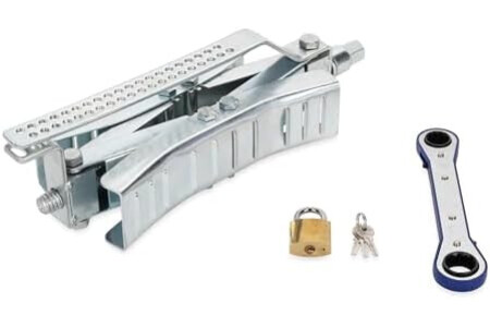 Features: Raised ribs for increased traction and less slippage; Includes: A comfort-grip ratchet wrench for easy installation and a lock for added security